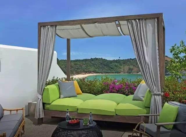 小巧精致的臥室,寬敞舒適的榻榻米,室內室外渾為一體的自然愜意。晚風輕輕的吹過蔥郁的樹木,明黃的燈光像是點亮了整幅畫。 ⒊ 泰國 普吉島奈函酒店