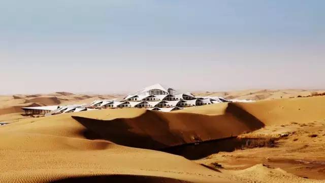 這家酒店位于北京以西800公里外的內蒙古沙漠中,是全球唯一不用傳統材料打造的沙漠綠色建筑。響沙灣蓮花酒店座落在沙漠中,像沙漠中盛開的蓮花。
