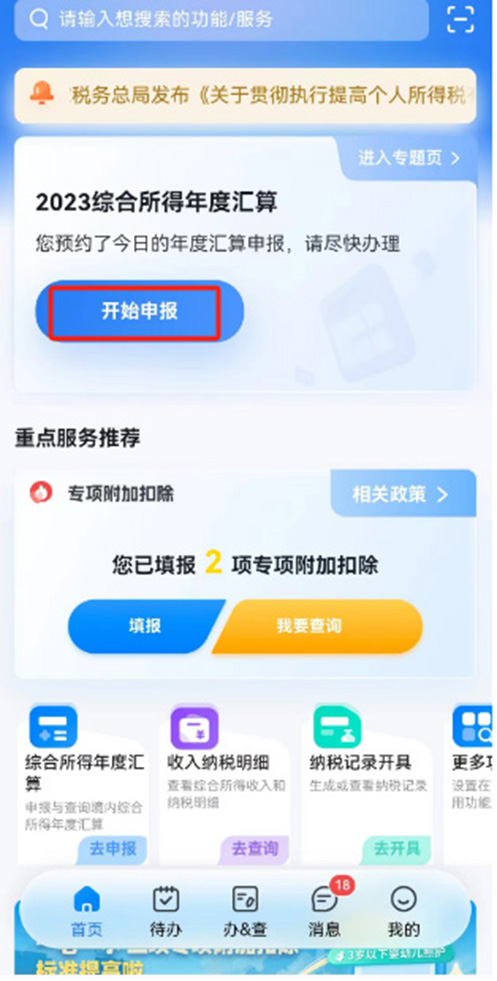 個(gè)稅匯算清繳具體操作 居民個(gè)人2023年度綜合所得年收入額超過(guò)6萬(wàn)元時(shí),可以在3月1日至6月30日內(nèi),通過(guò)標(biāo)準(zhǔn)申報(bào)辦理年度匯算。居民個(gè)人取得境外所得的,可到WEB端或辦稅服務(wù)廳辦理。 個(gè)稅APP標(biāo)準(zhǔn)申報(bào)操作步驟來(lái)了: 步驟一:開(kāi)始申報(bào) 有預(yù)約的,可以在預(yù)約時(shí)間辦理,進(jìn)入【個(gè)人所得稅APP】首頁(yè),點(diǎn)擊【開(kāi)始申報(bào)】開(kāi)啟2023個(gè)稅匯算清繳。 沒(méi)有預(yù)約的,先進(jìn)行預(yù)約。