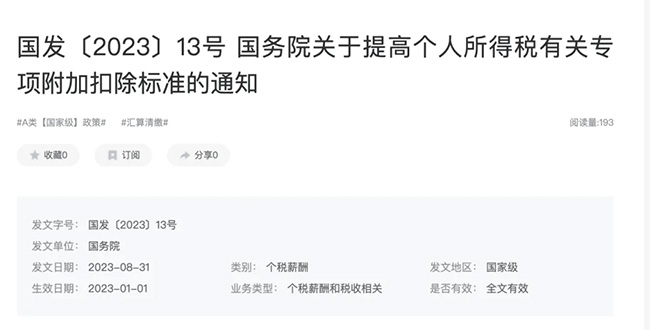 事實上,早在2023年8月31日,國務院就曾發布《關于提高個人所得稅有關專項附加扣除標準的通知》,就“提高3歲以下嬰幼兒照護等三項個人所得稅專項附加扣除標準”作出明確規定: