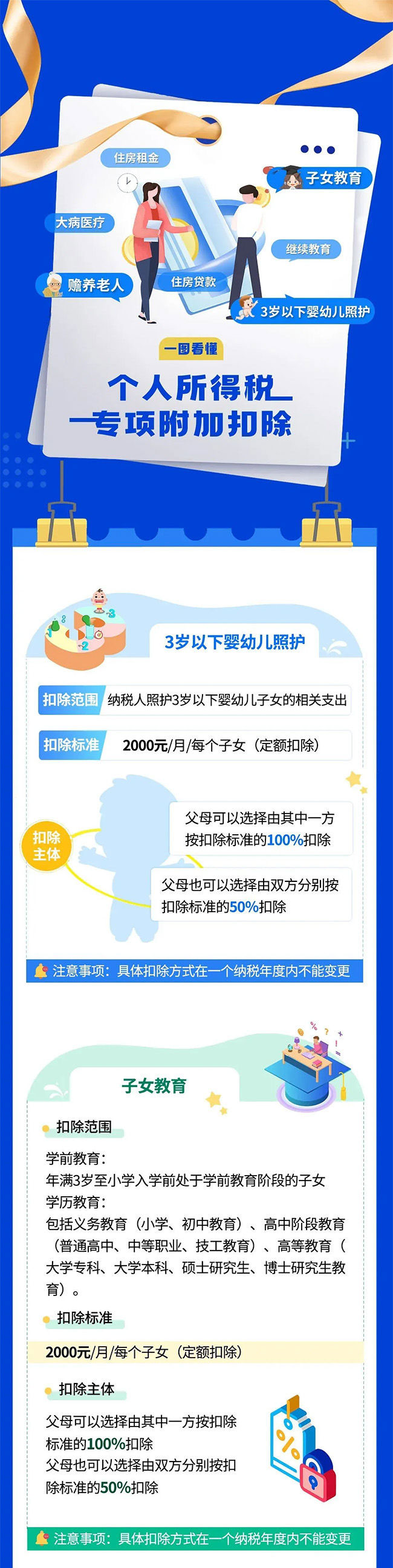 一、3歲以下嬰幼兒照護專項附加扣除標準,由每個嬰幼兒每月1000元提高到2000元。