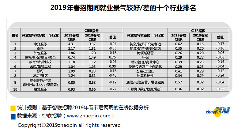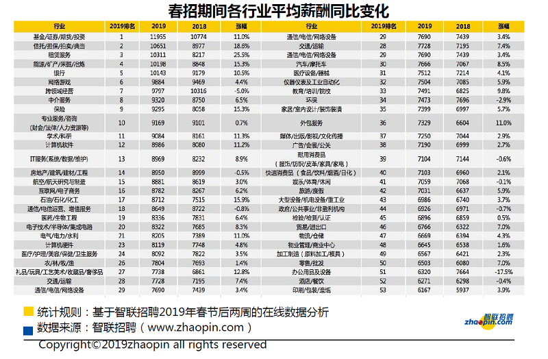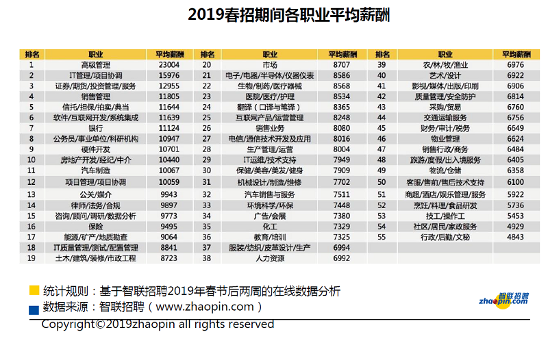 智聯招聘發布《2019春季人才流動報告》春招平均薪酬為8,165元