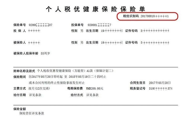 2、注意!不是所有的保險(xiǎn)都可以抵扣個稅 看完上文,很多小伙伴肯定在想:我也買了商業(yè)健康保險(xiǎn),是不是也可以享受這個抵稅政策呢? 其實(shí)并不是。 目前,主要有下面這4種特定的保險(xiǎn),才能享受國家稅費(fèi)抵扣。 一、年金 這里的年金,指的是單位給員工買的企業(yè)年金或者職業(yè)年金。這類年金目前也只有像事業(yè)單位、政府部門、國企一些福利比較好的單位才有。 我們個人買的常規(guī)的年金險(xiǎn),是不屬于此類的。 如果你的單位為你購買了企業(yè)年金,一般來說,這部分的稅費(fèi)會由單位幫你進(jìn)行處理,會自動抵扣,不需要我們自己去申請。如果你是在這些單位上班,可以關(guān)注關(guān)注。 二、商業(yè)健康險(xiǎn) 這里的商業(yè)健康險(xiǎn),指的是一種特殊的,保單上會顯示“稅優(yōu)識別碼”的稅優(yōu)健康險(xiǎn)。 根據(jù)《國家金融監(jiān)督管理總局關(guān)于適用商業(yè)健康保險(xiǎn)個人所得稅優(yōu)惠政策產(chǎn)品有關(guān)事項(xiàng)的通知》文件規(guī)定: 適用個人所得稅優(yōu)惠政策的商業(yè)健康保險(xiǎn)產(chǎn)品范圍包括符合要求的醫(yī)療保險(xiǎn)、長期護(hù)理保險(xiǎn)和疾病保險(xiǎn)。其中,醫(yī)療保險(xiǎn)的保險(xiǎn)期間或保證續(xù)保期間不低于3年;長期護(hù)理保險(xiǎn)和疾病保險(xiǎn)的保險(xiǎn)期間不低于5年。 也就是說,并非購買的所有保險(xiǎn)產(chǎn)品都能夠抵扣個稅,只有購買在稅收優(yōu)惠型商業(yè)健康險(xiǎn)范圍內(nèi)的保險(xiǎn)產(chǎn)品,才能夠申報(bào)這項(xiàng)扣除。 如何判斷購買的商業(yè)健康保險(xiǎn)是否在“稅收優(yōu)惠型商業(yè)健康險(xiǎn)”的范圍內(nèi)呢? 一個重要判斷標(biāo)準(zhǔn)就是您購買的保單上是否有“稅優(yōu)識別碼”。稅優(yōu)識別碼是為確保稅收優(yōu)惠商業(yè)健康保險(xiǎn)保單唯一性、真實(shí)性、有效性,由商業(yè)健康保險(xiǎn)信息平臺按照“一人一單一碼”原則對投保人進(jìn)行校驗(yàn)后,下發(fā)給保險(xiǎn)公司,并在保單憑證上打印的數(shù)字識別碼。