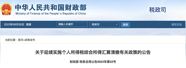 2023年8月18日,財政部、國家稅務總局兩部門聯合發文,繼續延長4項個人所得稅優惠政策。